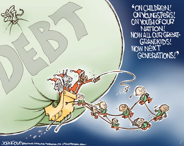 The Markets are up, so all is well. Meanwhile, Obama Claus is suited-up and ready to continue delivering the debt. Consider it our gift to future generations …