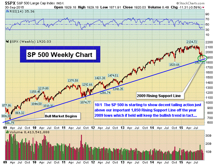 Take a look at the S&P 500 weekly chart, below, which is currently holding at the bullish up-trend support line. Many traders will identify this area as a dividing line between a correction within a continuing bull market and a bear market.