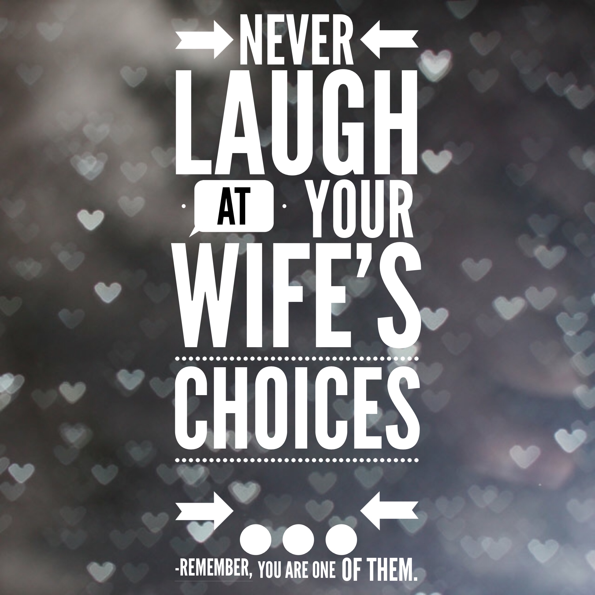 Don't ask how I know, but, never laugh at your wife's choices. Remember, you are one of them.