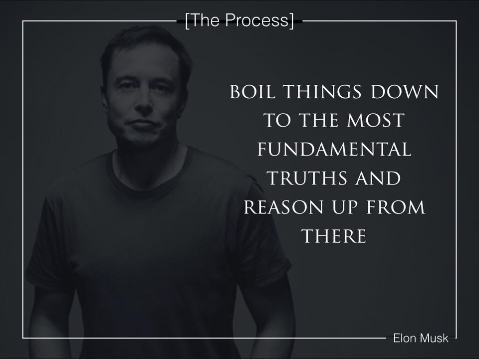 Just a saw an interesting Elon Musk quote:  "Boil things down to the most fundamental truths, and reason up from there."