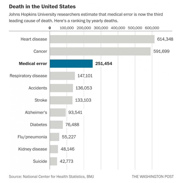 Medical errors are the 3rd leading cause of death according to Johns Hopkins.
