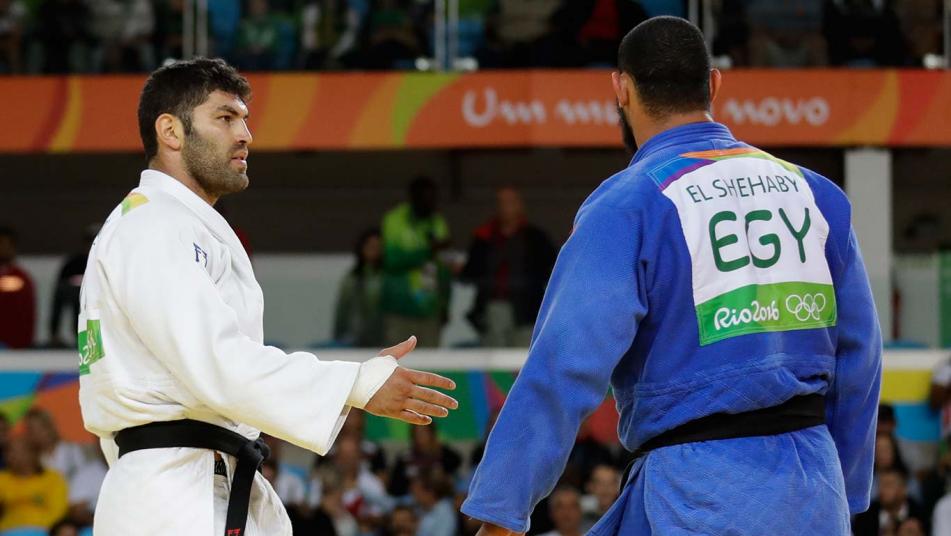 Unfortunately, politics still can get in the way. Below, an Egyptian Judo competitor refused to shake hands with his opponent (from Israel) after losing to him on Friday.
