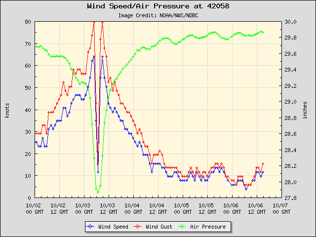 Have you heard the term "Eye of the Storm"? Well, in the context of Hurricane Matthew, it went directly over a weather buoy (Station #42058).