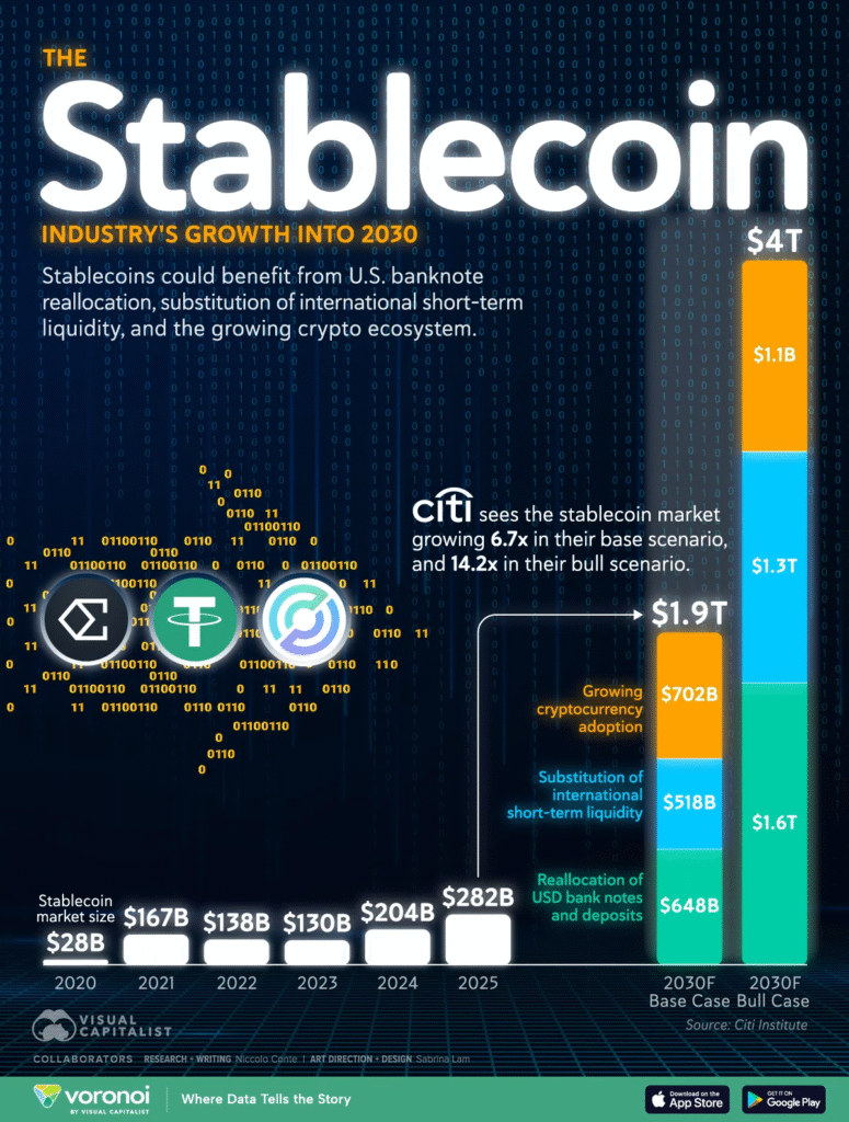 It’s also worth noting that stablecoins have become a kind of “parking spot” for capital moving in and out of crypto trades. As smart contracts have enabled holders to earn yield by lending, providing liquidity, or farming rewards, stablecoins’ appeal has only grown.