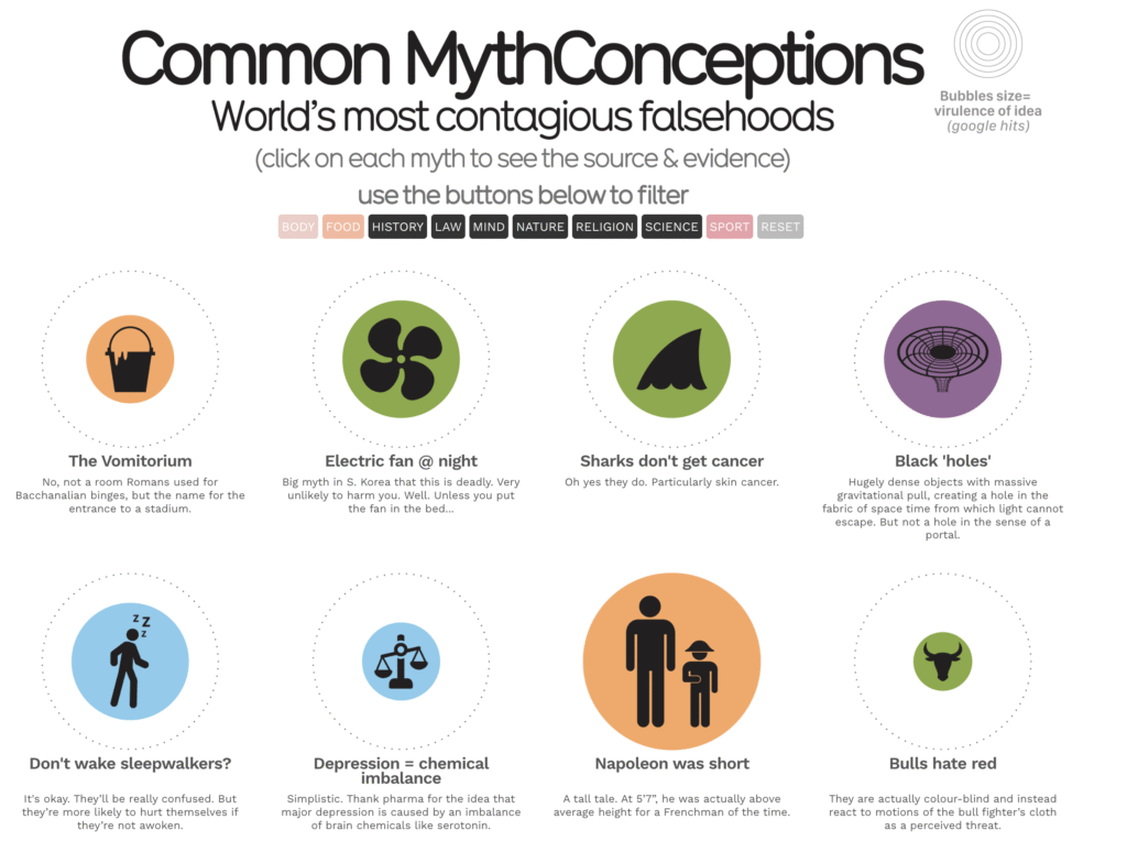 InformationIsBeautiful put together an infographic highlighting some of the most popular misconceptions.