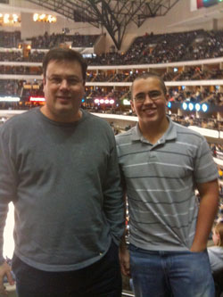 As an early gift, I got to go to a hockey game with my son. This picture captures a Good News – Bad News moment for me. On the positive side, I'm happy to see that my son shaved off his strangely orange mop of hair. However, standing next to him, I look like a professional "before" model.