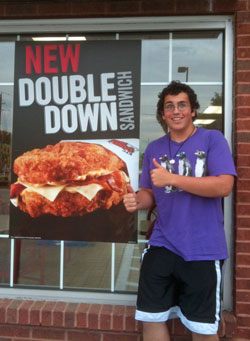100427-Z-Excited-About-the-KFC's new Double Down sandwich has been getting tons of press since its ingredients were revealed. Some blogs are calling the sandwich "disgusting", while others