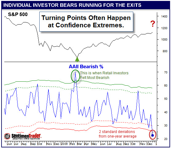Also dampening bullish spirits, the market indices put in a classic bearish outside reversal day last week. That means price starts high, but closes near the low of the day. This pattern is often seen near market tops. It occurred right at the resistance level from the May highs, with the market relatively overbought. While MACD shows waning momentum, don't let a pop higher here surprise you.