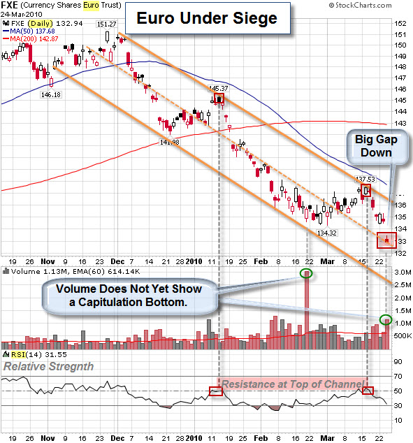 This chart highlights one reason that a weak dollar matters. While the Dow is much higher in dollar terms, it is still declining when priced in Gold. This indicates that the strength we have seen is more a function of a weaker dollar rather than a real increase from real demand.